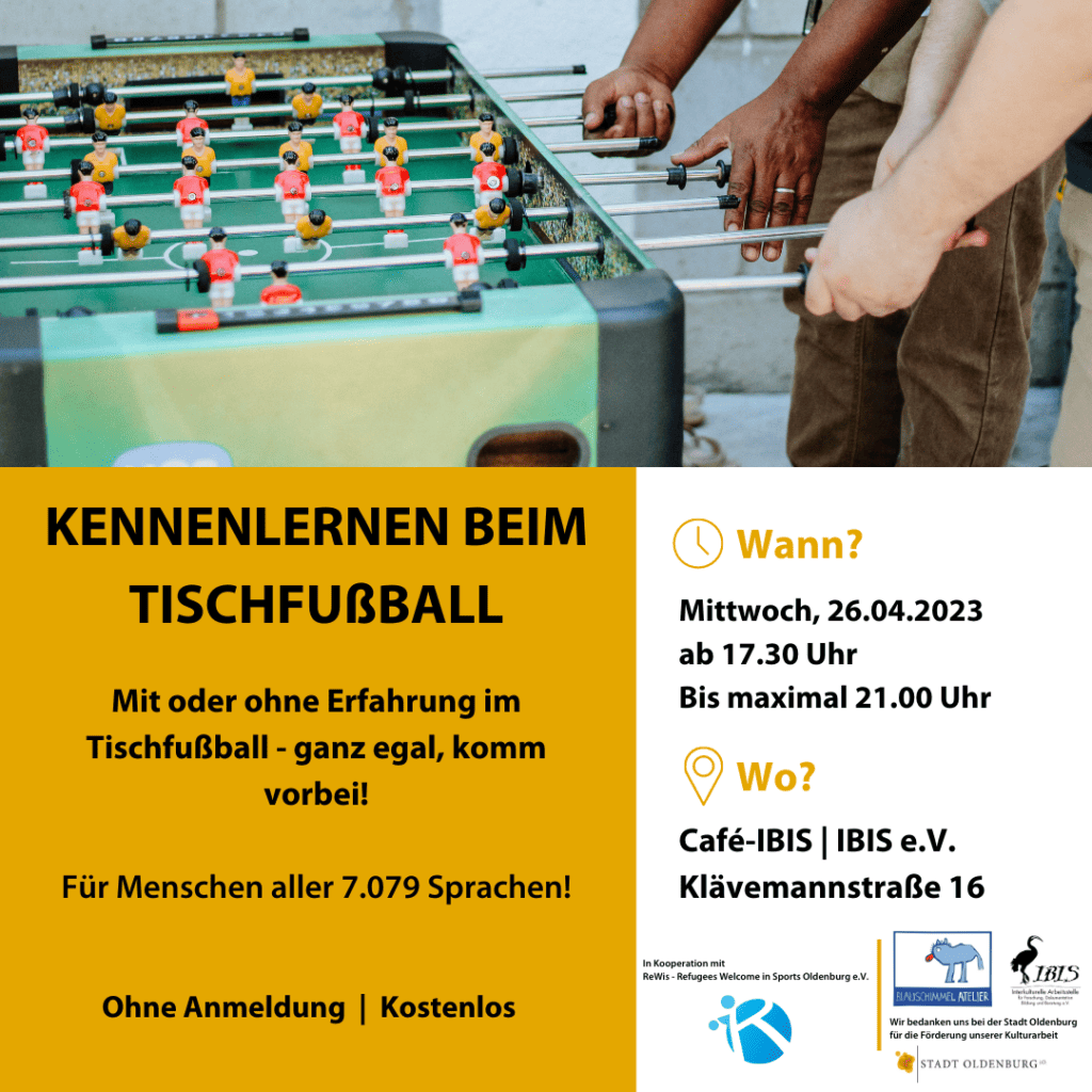 Am Mittwoch, 26.04.2023 ab 17.30 Uhr im Café-IBIS, Klävemannstraße 16 in Oldenburg.
